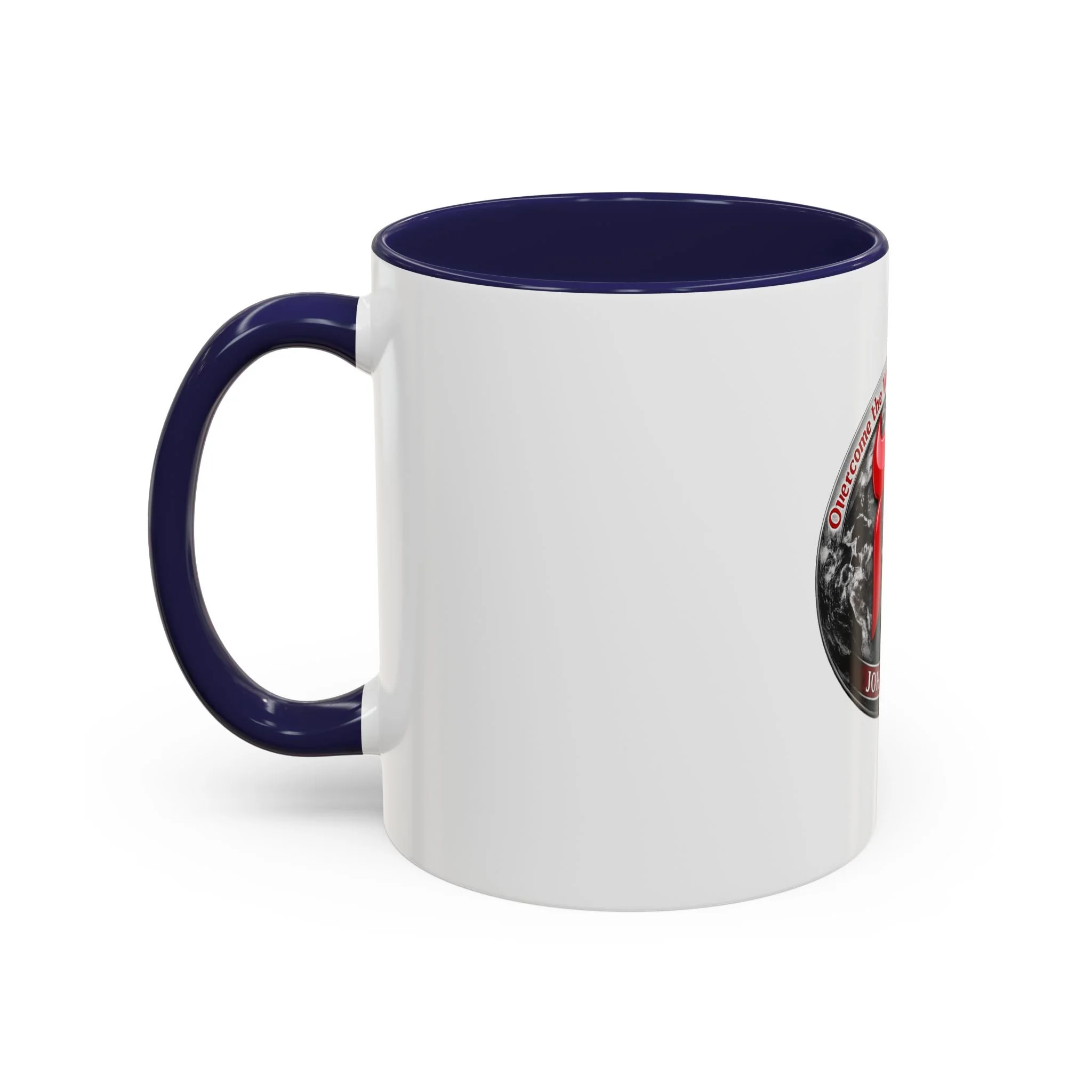 Accent Coffee Mug — 'Comecrome the World Global Ministries' John 16:33 Religious Coffee Mug